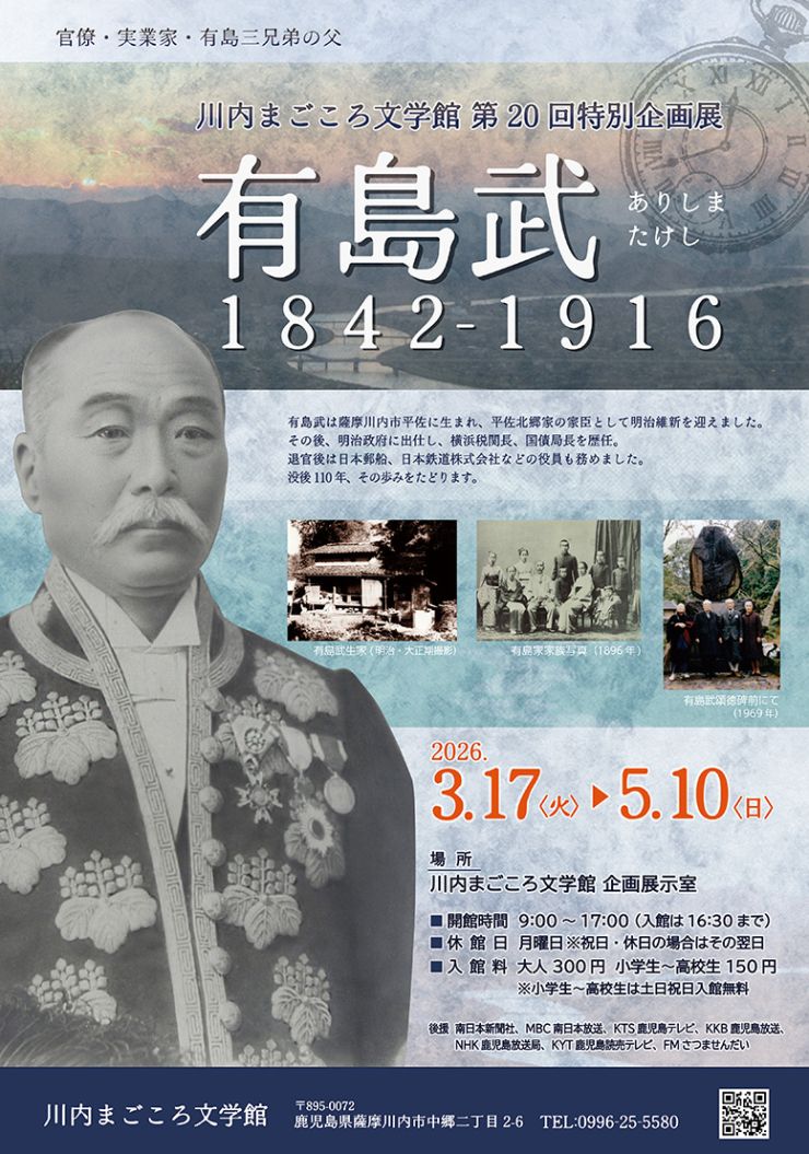 現在の薩摩川内市平佐町に生まれた有島武は、官僚や実業家として活躍し、有島三兄弟の父